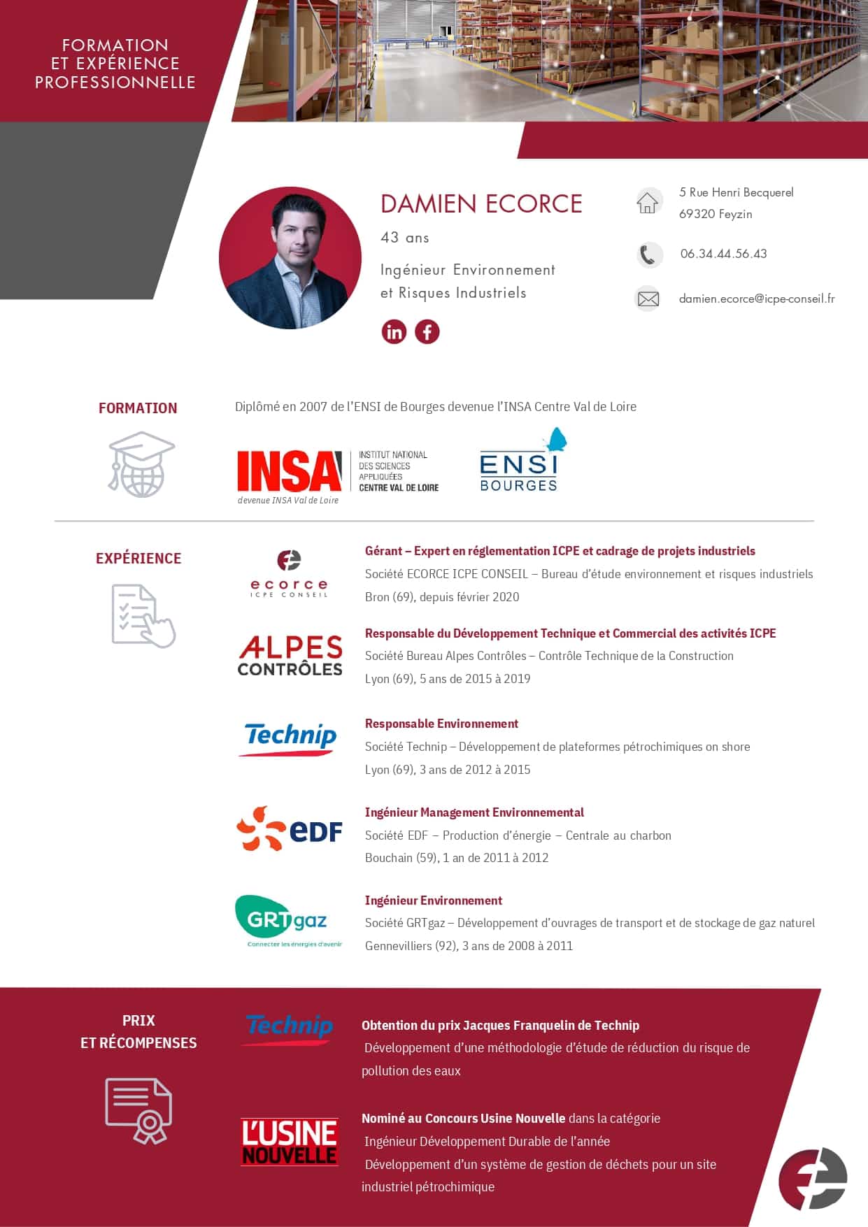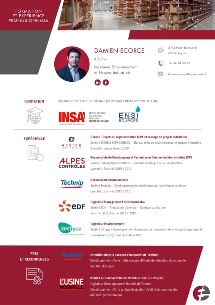 C’est dans ce contexte que Damien Ecorce (Ingénieur Environnement et Risques Industriels depuis plus de 10 ans en France et à l’international) a décidé de créer la société Ecorce ICPE Conseil.